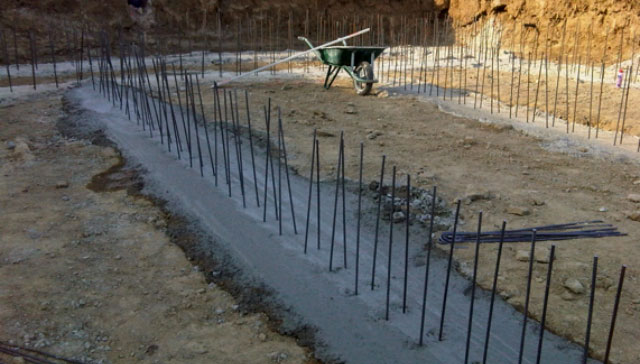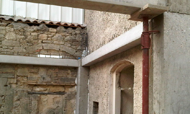 Structure poteaux poutres dans les remparts du château de Lavérune