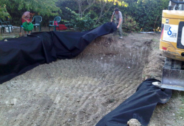 • Terrassement et mise en place d’un géotextile en périphérie.